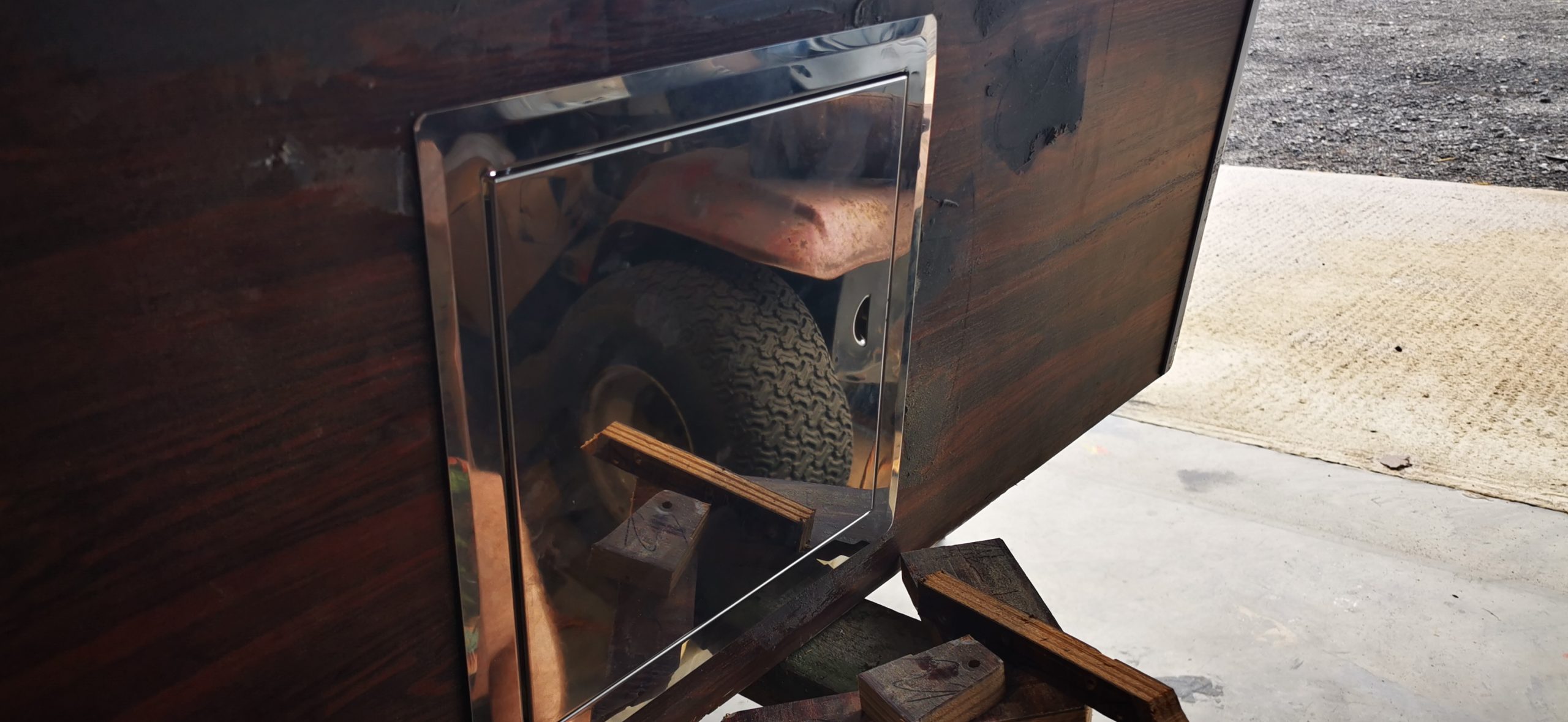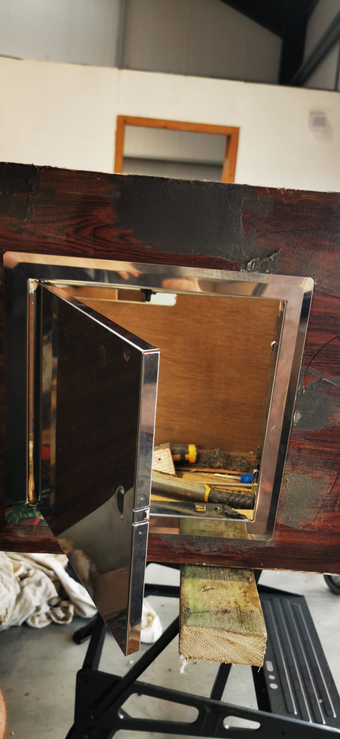 A professional carpenter was then called in to accurately cut out a window into the other side of the table so we could store all the cues, calks etc. Our carpenter, Nick, cut the window perfectly and mounted the glass panel.
