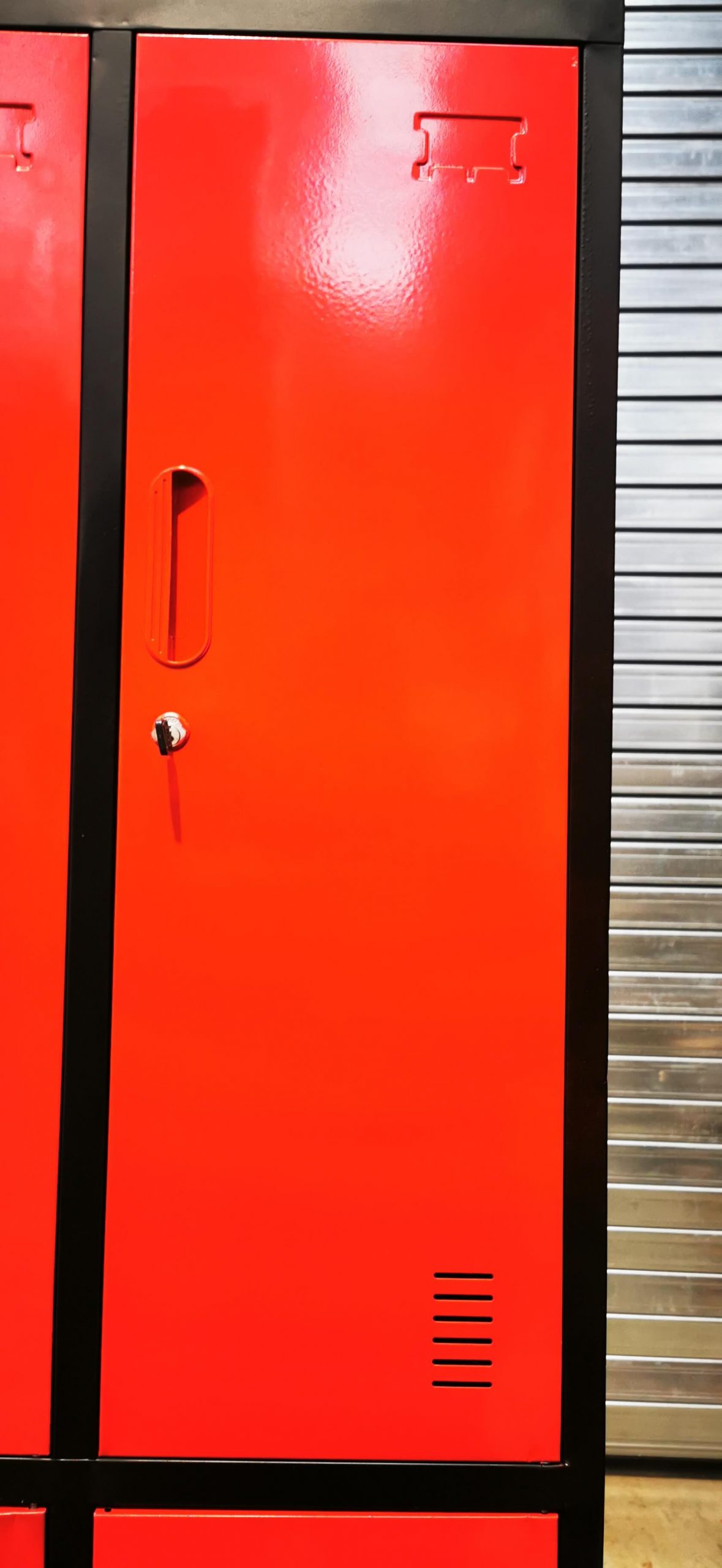 We purchased a series of old lockers which were in a slightly run-down condition. We first started by removing all the panels, shelves and all damaged locks. Then, we began sanding down the rusted edges and keying the panels. We finished off by using some rags to remove any remaining dust particulate. Then, we moved on to the panels and doors and repeated the process.